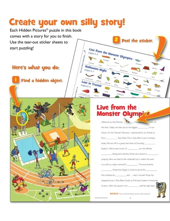 Halloween Tales is packed with spooky stories that get silly when readers get involved! Kids 6-9 will have a blast solving the Hidden Pictures puzzles, then placing the corresponding stickers in the blank spaces of the stories in whatever order they choose. They’ll create unique silly stories from a multitude of possible combinations. This collection contains friendly witches, zany monsters, glowing jack o' lanterns, tricks, treats and of course, stickers. Over 250 colorful stickers pair with fill-in-the-blank stories that kids will complete for laugh-out-loud entertainment—the sillier the better! Fun to share with the whole family, Halloween Tales is filled with wholesome humor kids and grown-ups can enjoy together. Sticker stories make a great Halloween activity. Placing stickers also improves hand-eye coordination and helps kids with concentration, focus and more. This 48-page book is great to take on the go to bring puzzling fun to little pumpkins anywhere.