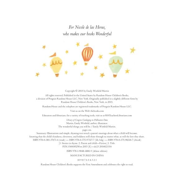 From brave and bold to creative and clever, Emily Winfield Martin celebrates all personalities and their potential. With a beautiful gatefold, gorgeous and moving illustrations, and a rhyming text, this is a book that parents will love reading over and over to their kids--both younger and older. It's a great gift for any occasion with its loving and inspiring message:
