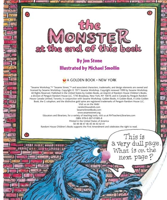 Read along as Grover begs you not to turn the page -- because there is a monster at this end of this book!