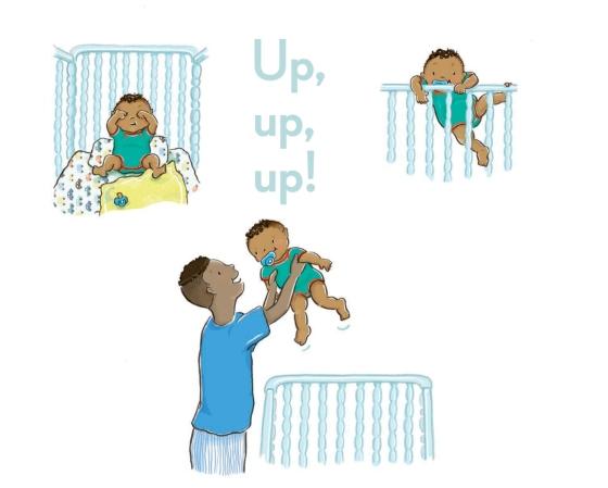 “Opposites loom large for babies, and Gee brings the concept to adorable life. Her action-packed visual vignettes refreshingly feature a brown-skinned baby and caretaker dad who dramatize the obvious (‘no’ and ‘yes’) and the more subtle (‘yay’ and ‘uh oh’). Her touch is feather-light, with many telling details to spot.” -