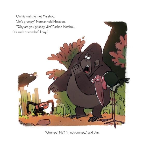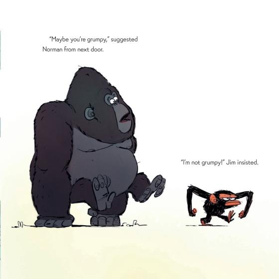 Jim the chimpanzee is in a terrible mood for no good reason. His friends can’t understand it – how can he be in a bad mood when it’s SUCH a beautiful day? They encourage him not to hunch, but to smile and do things that make THEM happy. But Jim can’t take all the advice. Could it be that he just needs a day to feel grumpy?
