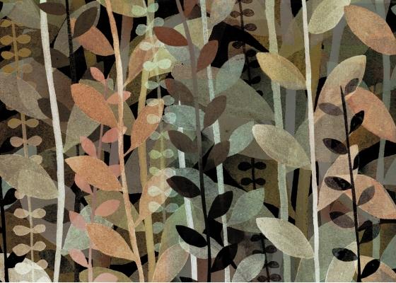 Simplicity is key in both text and illustrations. The black underwater provides the perfect background for the mostly gray-toned fish and seaweed while the monochromatic palette strips the artwork down to essential, yet exquisite design. Movement is indicated with a trail of small white bubbles. This