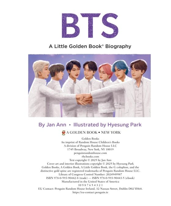 Get to know BTS—the South Korean K-pop group loved by millions of fans around the world—with this beautifully illustrated collectible Little Golden Book!BTS’s popularity has grown larger than anyone could have imagined.This boy bands' smash success story comes to life—from their early days together in South Korea, to becoming one of the biggest music groups in the world with hit songs like "Dynamite" and "Yet to Come," to speaking at the United Nations. When you’re BTS, you work as a team, stay true to yourself, and inspire millions!