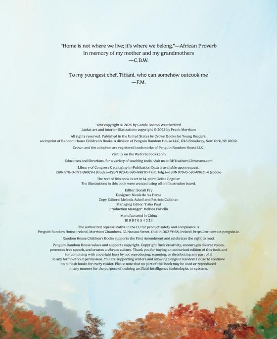 Weatherford’s narrative reads aloud beautifully; Morrison’s illustrations capture the warmth and strength of the characters and relationships that bring this happy family together for a time they clearly treasure." —