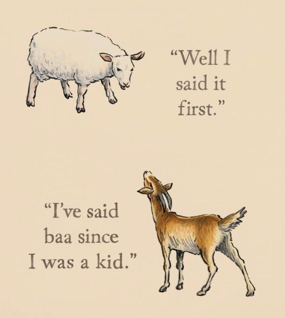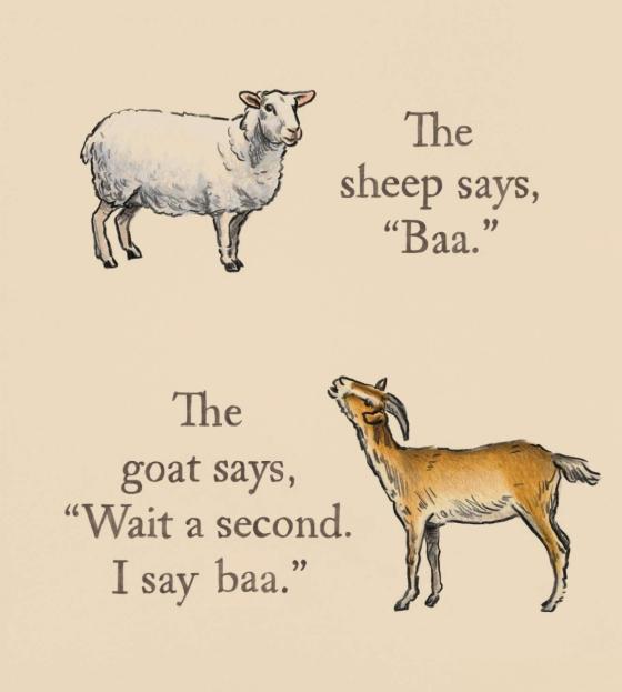 But when the sheep says “baa,” the goat cuts in. The goat also says “baa.” Now what? No one wants to share their sound!
