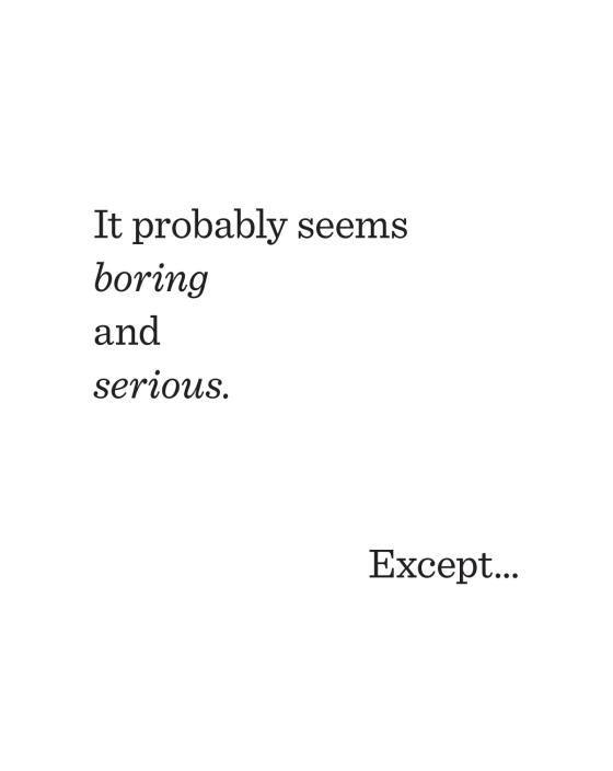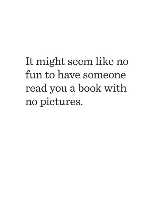 You might think a book with no pictures seems boring and serious. Except . . . here’s how books work. Everything written on the page