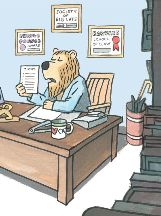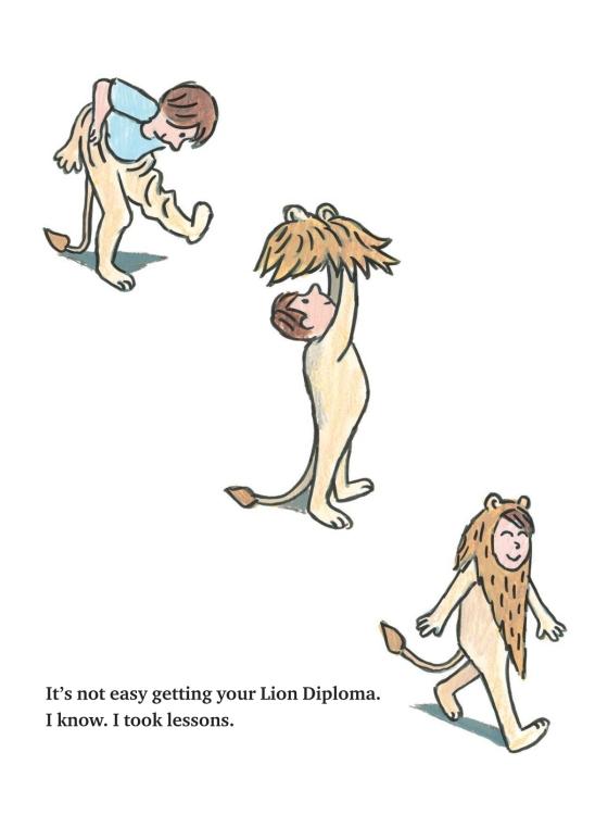 With the wit and read-aloud appeal of Peter Brown’s Children Make Terrible Pets and William Steig’s Pete’s a Pizza, this funny, fierce picture book teaches kids just what it takes to be a great lion There are seven steps to becoming a proper lion, including Looking Fierce, Roaring, Prowling Around, and Pouncing. Our young hero, a rather meek and scrawny human boy, does his best to learn the necessary skills during his training with a master instructor (who just happens to be a real lion). After a grueling set of lessons, the boy discovers that that the final step—Looking Out for Your Friends—is the most important of all. That’s how any kid can earn his lion diploma (not to mention the affection of every cat in town).
