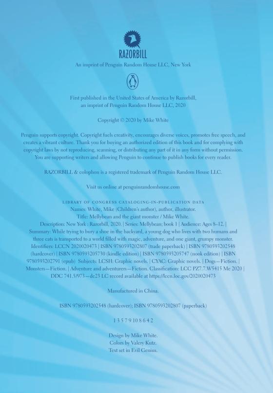 The Secret Life of Pets meets The Wizard of Oz in this debut graphic novel about a spunky pup who gets trapped in a world filled with magic, adventure, and one giant, grumpy monster.Melly loves to play games. All her feline friends want to do, though, is take a nap. So when she doesn't leave them alone, the cats trick her into burying a shoe in the backyard. But the small prank turns into a big problem when Melly falls down the hole . . . and is magically transports her to another world!