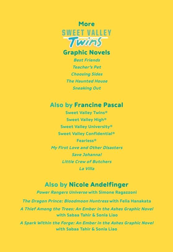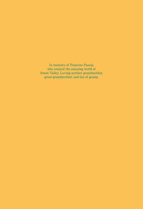 Francine Pascal is the creator of the Sweet Valley universe, which includes Sweet Valley Twins, Sweet Valley High, and Sweet Valley Unicorn Club. Over their lifetime, Sweet Valley books have sold millions of copies, been adapted into a TV series (in the eighties), and inspired board games, puzzles, and dolls. It is one of the most popular kids' book series of all time. Francine lives in New York and the South of France.