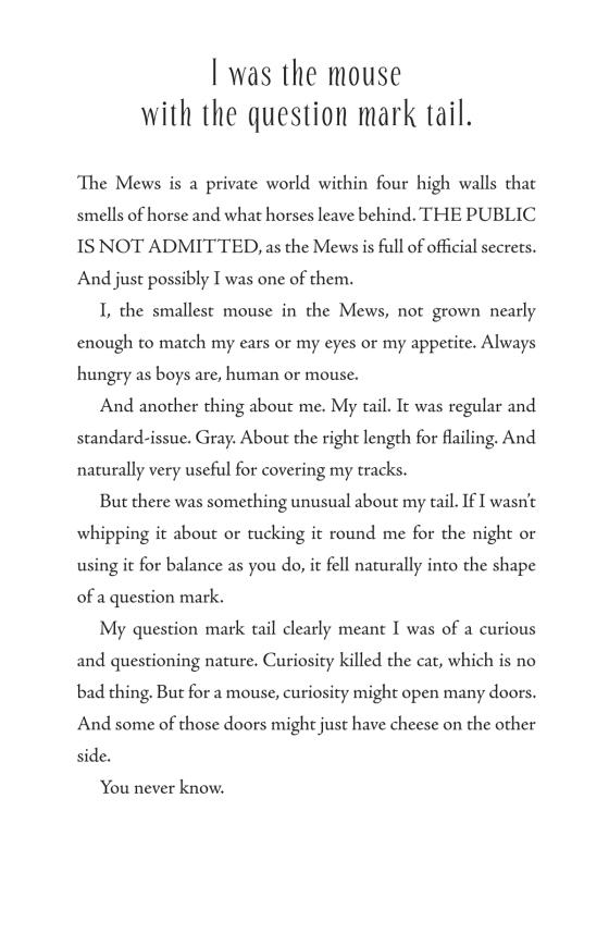 Set off on an amazing quest with this lovable orphaned mouse.The tiniest mouse in the Royal Mews is such a mystery he doesn’t even know his own name! He scampers off on a epic adventure in and around Buckingham Palace with a plan to seek the advice of Queen Victoria. The exhilarating journey takes him to strange and wonderful places, but will it help him discover who he is and where he came from? This delightful follow-up to the acclaimed