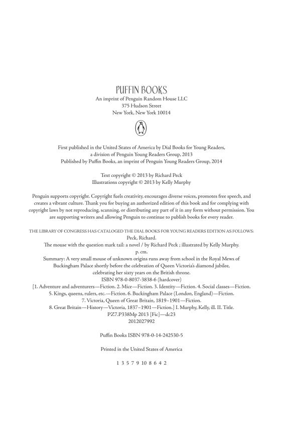 The Deseret News“Children love the idea of tiny, hidden worlds—of pixie, fairy or animal societies that exist alongside our own. Richard Peck taps into this affection with The Mouse with the Question Mark Tail . . . a lively tale.” —