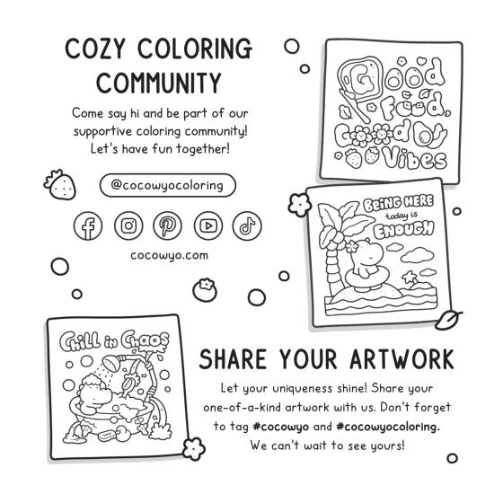 Cozy Vibes has sweet images and comforting quotes for all ages of coloring lovers!This coloring book includes: