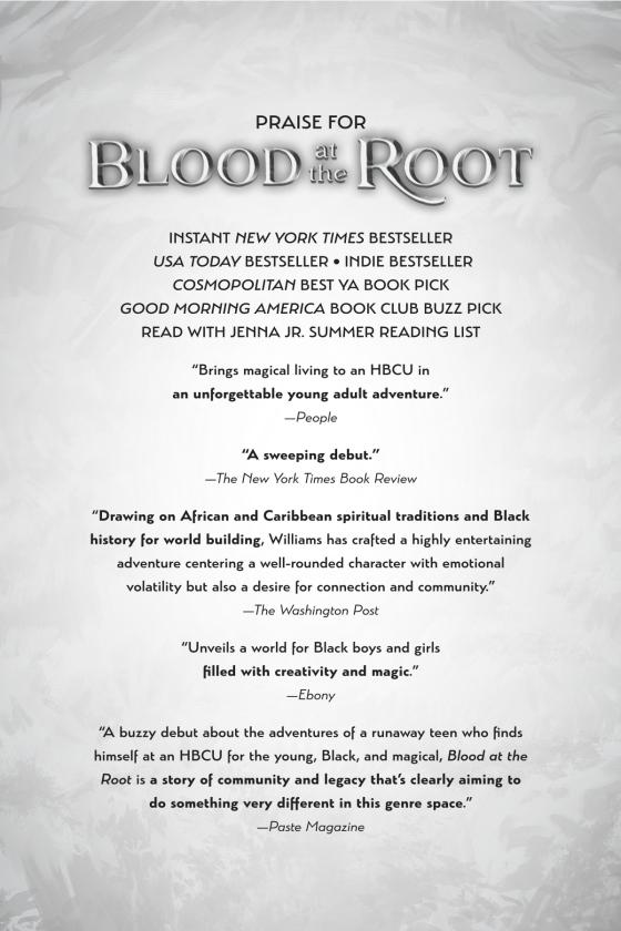 NEW YORK TIMES BESTSELLER • In the sequel to the “unforgettable” (People), New York Times bestselling fantasy debut Blood at the Root, a Black teenager with magical powers returns to Caiman University only to find new dangers and new secrets.It's Homecoming season at Caiman University, and all 17-year-old Malik Baron wants to do is be a regular college student…or as regular as he can get at a magical HBCU for young, Black Conjurers. He’s ready to go to parties, hang out with his new friends, choose a major, and talk to girls. Instead, he's reeling from a summer of revelations, heartbreak and betrayal, and still uncovering the truth about his powers and his legacy.