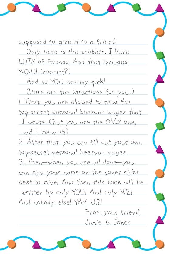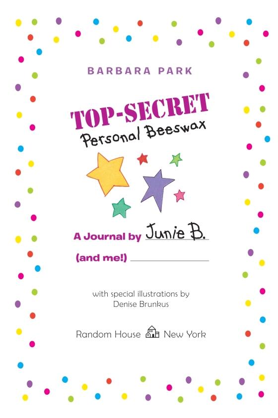 “Hilarious. Barbara Park makes reading fun.” —Dav Pilkey, author of Dog Man Barbara Park’s #1 New York Times bestselling chapter book series, Junie B. Jones, has been keeping kids laughing—and reading—for more than twenty-five years. Over 65 million copies sold!Wowie, wow, wow! It’s Junie B. Jones’s top-secret, personal beeswax! This hilarious companion to the best-selling series features Junie’s own original writings along with drawings, stickers, and lots of blank pages with creative prompts designed to get kids drawing and writing about their own top-secret, personal beeswax. Kids will love getting to know Junie up close in this fun, interactive writing format. Perfect for holiday, birthday, back to school, kindergarten and first grade graduation gifts!