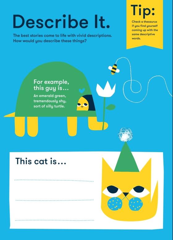 Write On is filled with helpful tips for creating stories — narratives, poems, comics, song lyrics — true ones, made-up ones, and are-you-kidding-me ridiculous ones. Quirky writing prompts get the creative juices flowing, and a tear-out story card game gets the stories rolling. When it’s complete, the journal becomes a one-of-a-kind keepsake kids will be proud to share. Bonus: Inside are two sheets of bookplate stickers for reviewing and sticking into favorite books.