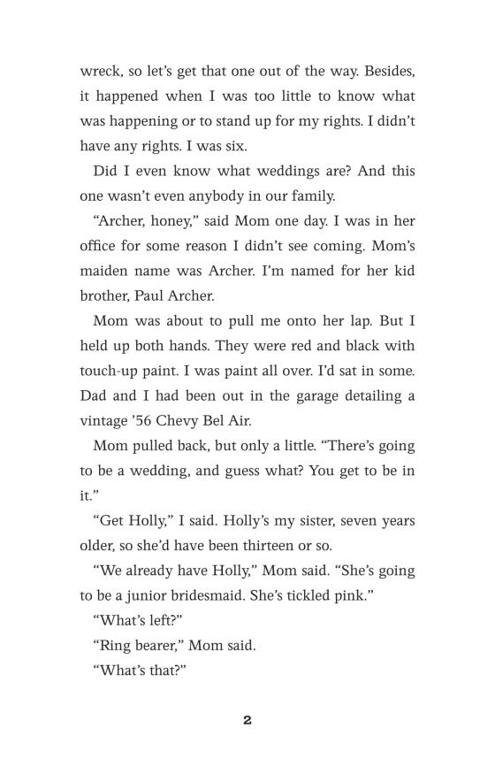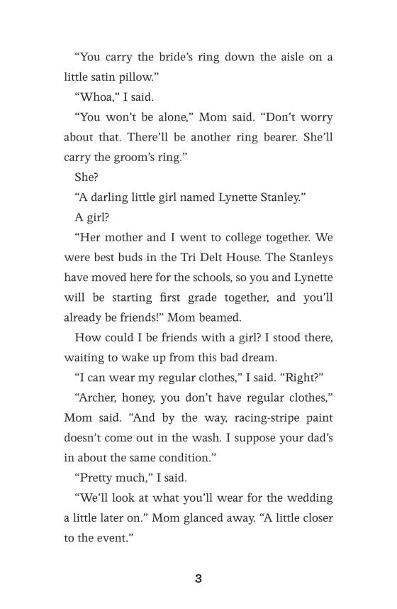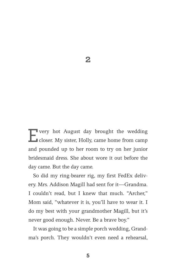 But now here comes middle school and puberty. Change. Archer wonders how much change has to happen before his voice does. He doesn't see too far ahead, so every day or so a startling revelation breaks over him. Then a really big one when he's the best man at the wedding of two of his role models. But that gets ahead of the story.
