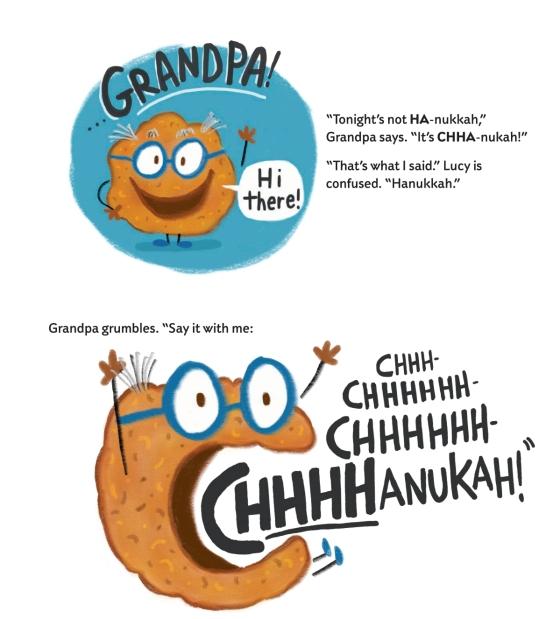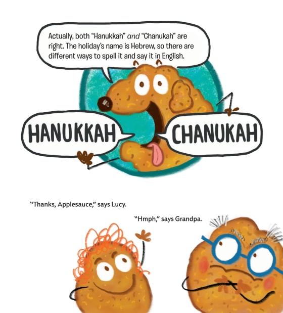 Imagine James Marshall's The Stupids celebrating Hanukkah, and you'd get the Latke family!Lucy Latke's family is just like yours or mine. Except that they're potato pancakes. And also, they are completely clueless. After lighting the menorah and gobbling the gelt, Grandpa Latke tells everyone the Hanukkah story, complete with mighty Mega Bees who use a giant dreidel to fight against the evil alien potatoes from Planet Chhh. It's up to the Latke family dog to set the record straight. (To start with, they were