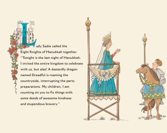 The whole kingdom has gathered to celebrate Hanukkah--but a dastardly dragon keeps interrupting the festivities. Can the Eight Knights of Hanukkah set things right? A Sydney Taylor Notable Book It's the last night of Hanukkah and everyone is doing their part for the big celebration, but a dragon called Dreadful has other ideas. He roams the countryside, interrupting the party preparations. Lady Sadie must call upon the Eight Knights of Hanukkah to perform deeds of awesome kindness and stupendous bravery and put an end to the dragon's shenanigans.