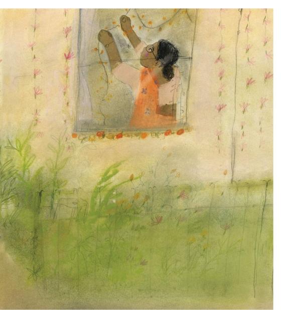 Aditi Anand, an illustrator from India, was the winner of a Picture This! Illustration competition in the UK. She says, “My work passionately reflects my origins. I love working with mixed media and am drawn to stories with strong emotional undertones. I enjoy being indoors, sipping chai, and drawing everyday life in my sketchbook.” Aditi Anand lives in Cambridgeshire, England.