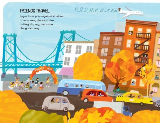Learn the familiar traditions of Thanksgiving, and how family takes on many forms, as friends, neighbors, and relatives arrive for a busy day of cooking, crafting, sharing, and celebration. Young readers will also be reminded to remember and honor those who must work on the holiday so that others might celebrate, including transit workers and first responders.