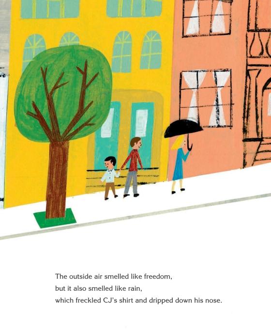 “The sharp illustrations—in bold, and cheerful primaries—get CJ’s restless energy and curious postures exactly right. The voices of CJ and his grandmother carry the story along in subtle point and counterpoint so that at this book’s quiet close you feel like you’ve been listening to a song.” —The Boston Globe
