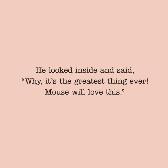 "Foley, making his children’s book debut, is an award-winning graphic designer and the creative director for the hipster-fashionista bibles Visionaire, V and VMan. His simple story concerns “a little bear (who) found a little box.” The cub thinks it is “the greatest thing ever!” But on his way to presenting the box to his friend Mouse, the furry hero meets up with naysayers whose discouragement ranges from “I’ve seen those before” (an owl) to “You’re holding it the wrong way” (a fox). But Mouse looks at the box “this way and that,” and agrees with his pal’s original rave, to the letter. Mouse gratefully makes the box his new home (hence, the title). Foley combines an energetic ink line with pleasingly off-register washes of muted color, giving his pages a handsome, retro look. He strips down the story and the illustrations to their essence, allowing toddlers to place themselves in the cub’s position, and rejoice when his best friends appreciates his gift- a box just right for Mouse to make his own."-Publishers Weekly
