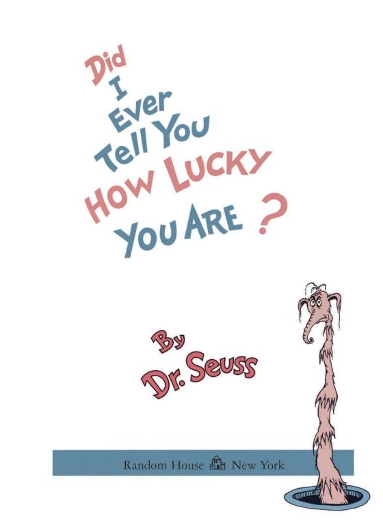 So begins the terrific advice of the wise old man in the Desert of Drize. This classic book provides the perfect antidote for readers of all ages who are feeling a bit down in the dumps. Thanks to Dr. Seuss's trademark rhymes and signature illustrations, readers will, without a doubt, realize just how lucky they truly are.