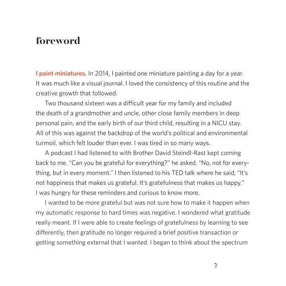 These 52 charming, miniature, tempera-paint images of mundane items are accompanied by mindfulness meditations to offer a new perspective on gratitude. During 2017, nationally recognized artist Brooke Rothshank created a weekly piece of art and a short meditation to accompany it. Painted in miniature, the images invite the viewer to slow down and see their world differently. Each painting was rendered by the artist in a slow and methodical way, contradicting our cultural need to consume  more information at a greater speed.